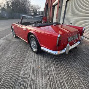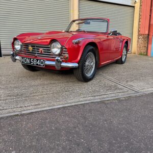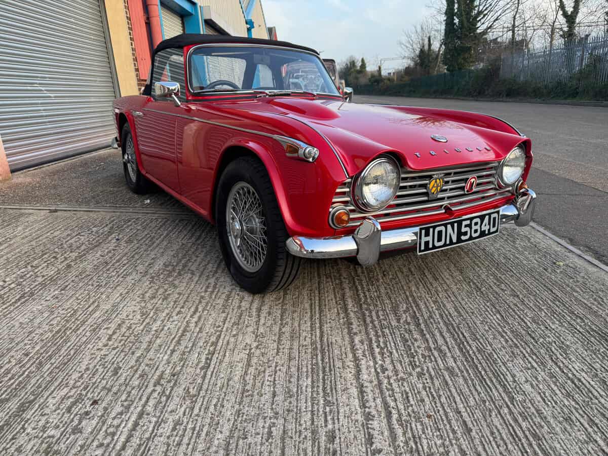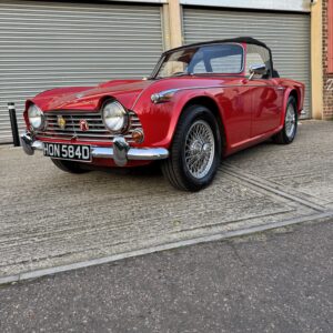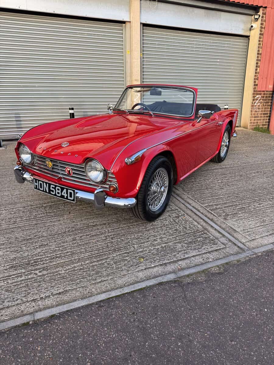We’re excited to offer this truly outstanding 1966 Triumph TR4A IRS as the prize in our latest Classic Car Competition. Finished in Signal Red with a black interior piped in white and presented to an exceptional standard. This is the kind of TR4A that stops people in their tracks: superb paintwork, flawless chrome, crisp panel gaps, and an interior that looks and feels as good as it gets.