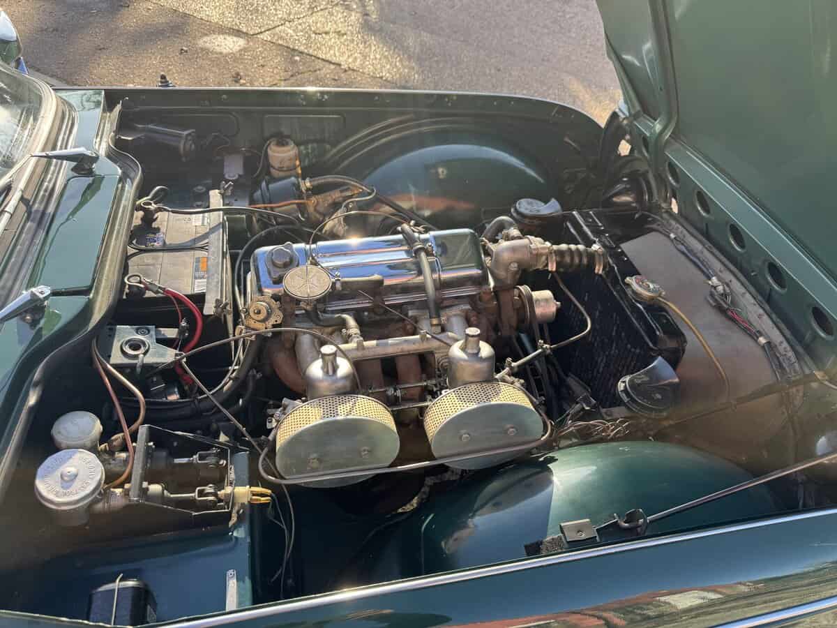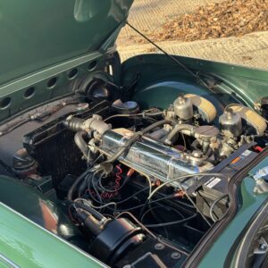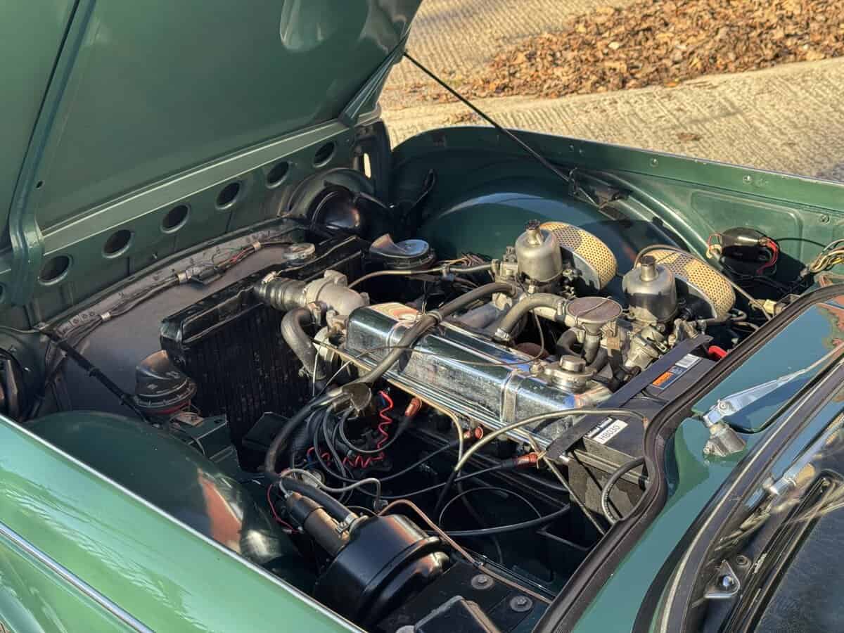 This example comes beautifully equipped with the period touches you want: overdrive, a gorgeous walnut dashboard, tonneau cover, and a hood bag. It drives and handles beautifully — the kind of classic you can genuinely enjoy, whether that’s crisp winter sunshine or summer evening lanes.