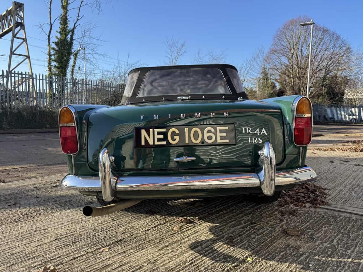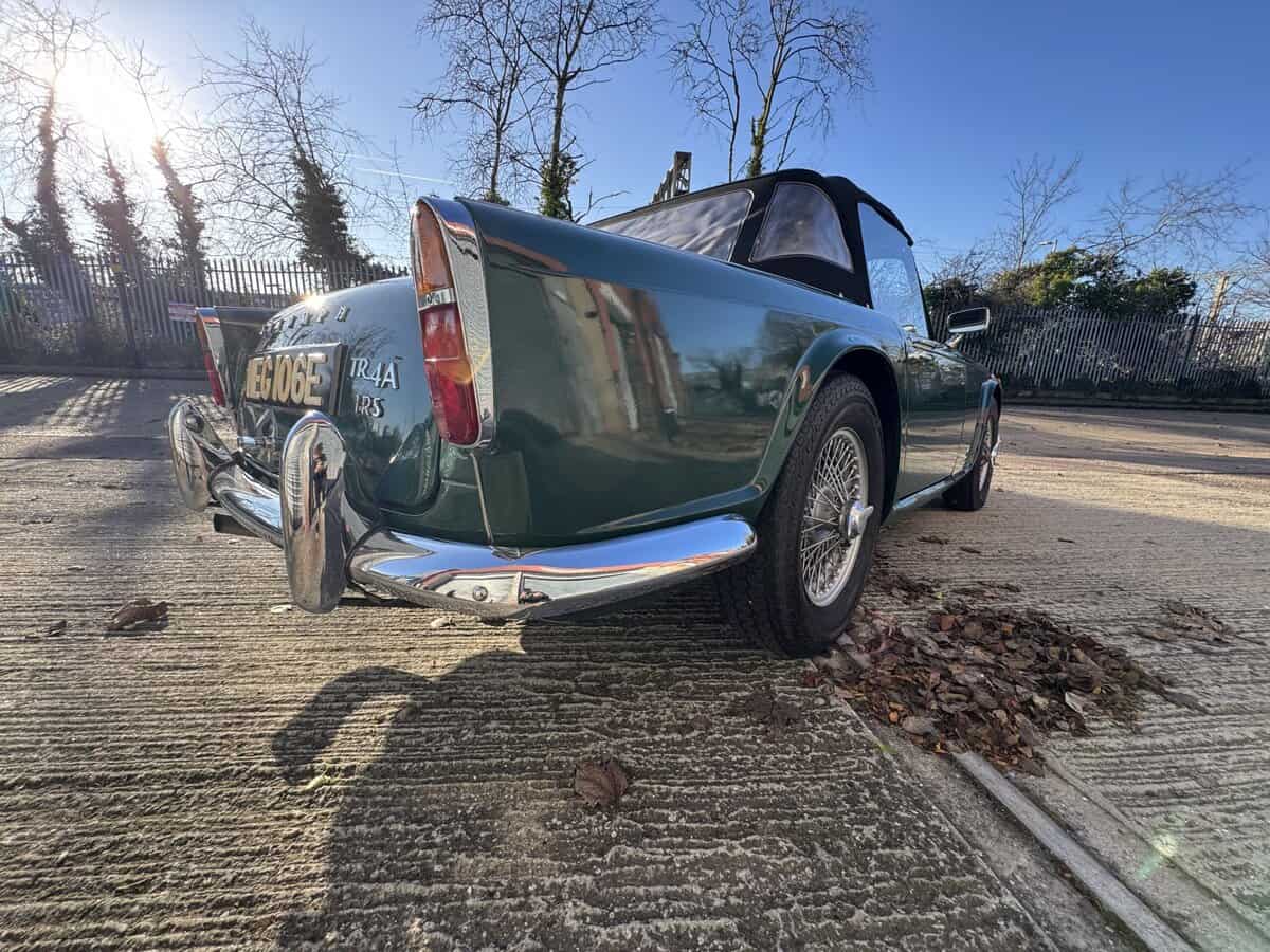 Designed by Giovanni Michelotti, the TR4A is widely regarded as one of Triumph’s best-looking sports cars — a proper British roadster with a touch of Italian elegance. And crucially, this is the TR4A IRS model, with Independent Rear Suspension and the distinctive IRS badge at the rear — the rarer, more desirable evolution of the TR4, and a car that drives with real confidence on modern roads.