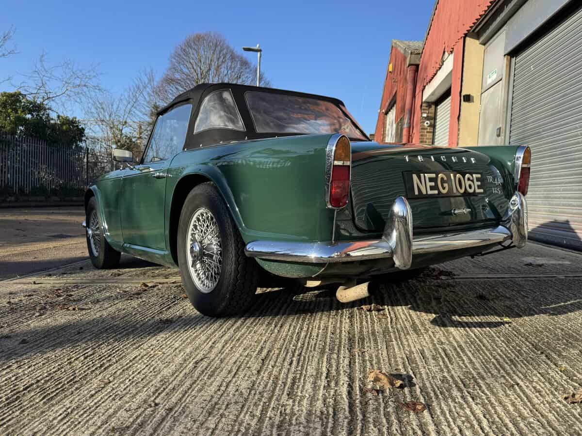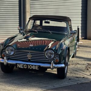 We’re delighted to offer this beautiful 1967 Triumph TR4A IRS — a UK right-hand-drive classic finished in British Racing Green with a black leather interior and wire wheels. It’s a beautifully restored example that’s been carefully maintained, so it presents in absolutely stunning condition inside and out — with that extra “X factor” you only get from a car that’s been properly cared for and cherished.