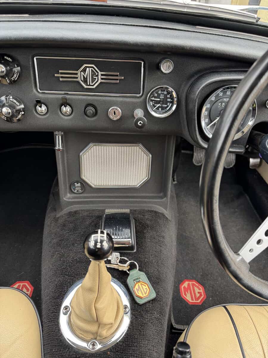 Externally, the MG looks absolutely superb. The immaculate paintwork, complemented by painted wire wheels, classic chrome bumpers and the unmistakable, elegant lines of the MGB GT coupe. The car also features a desirable Webasto-style folding roof, bringing open-air enjoyment to the GT model — a rare and much-loved addition.