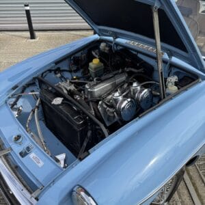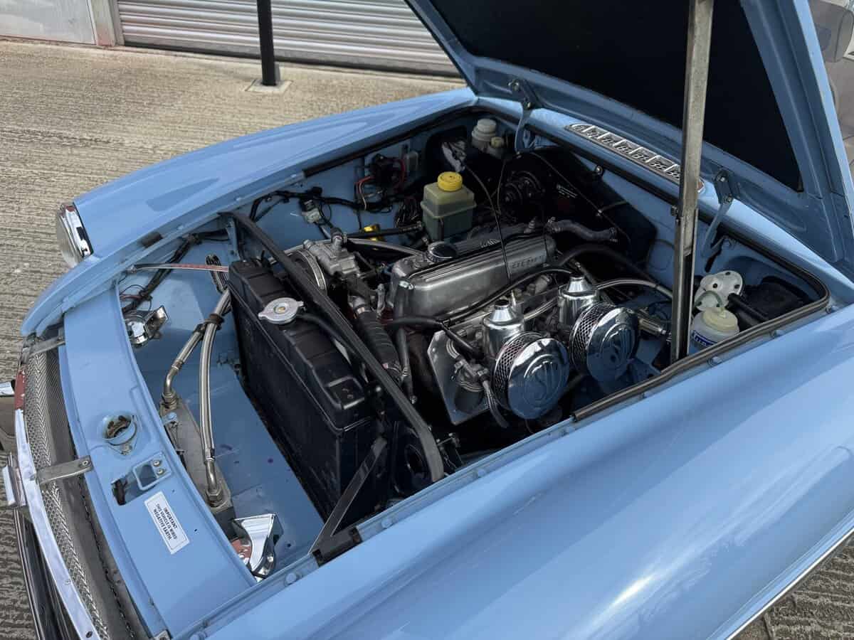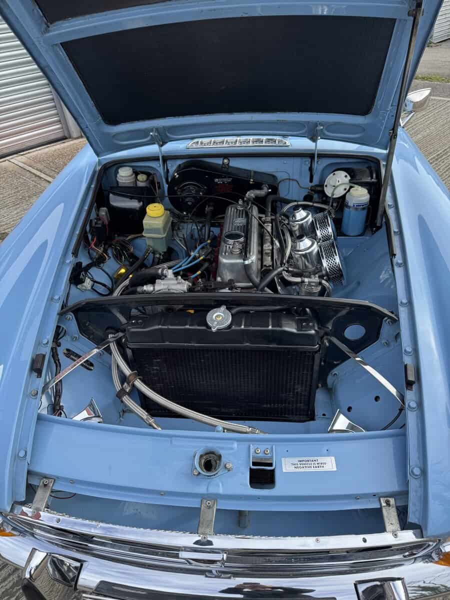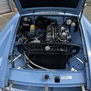 The engine bay presents beautifully and features twin carburettors with polished intake filters, braided hoses and a clean, well-maintained layout that reflects the care and attention this car has received.