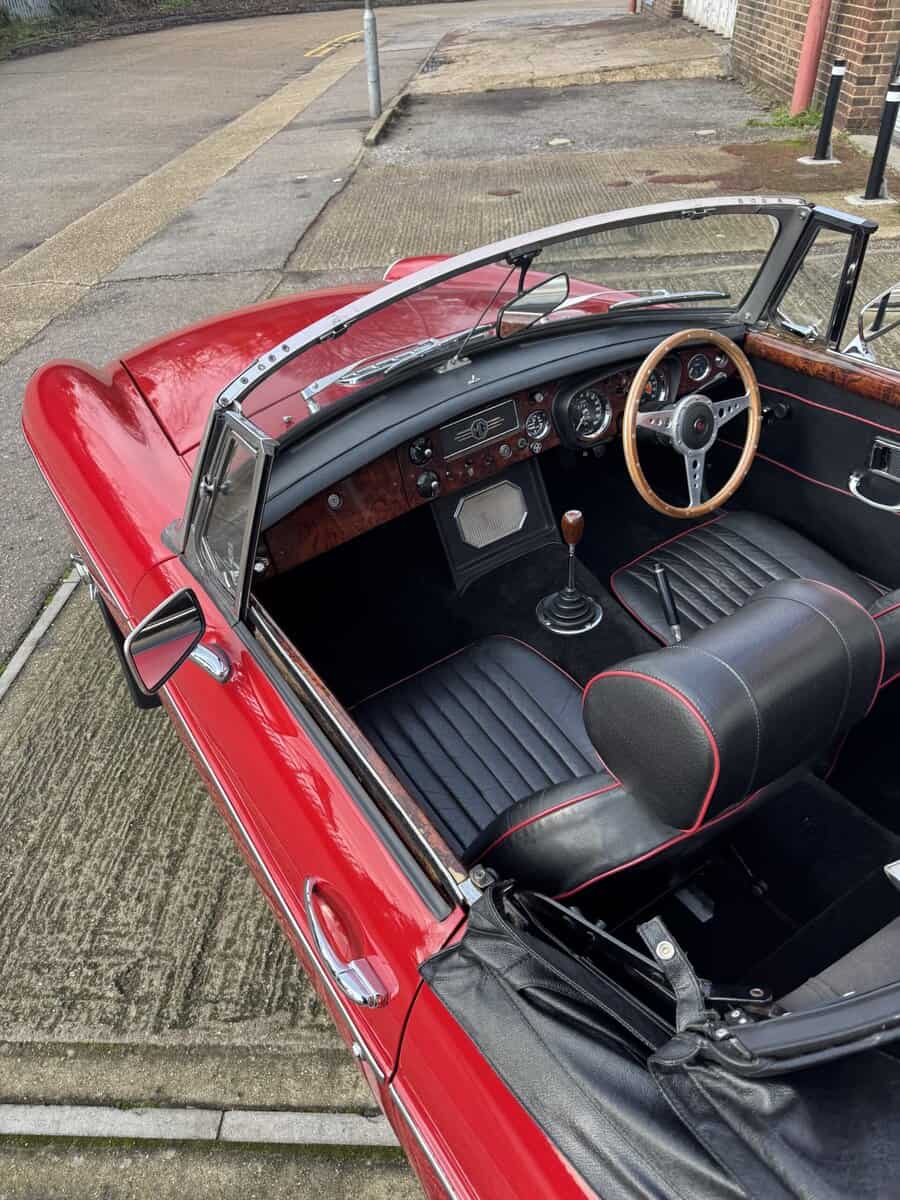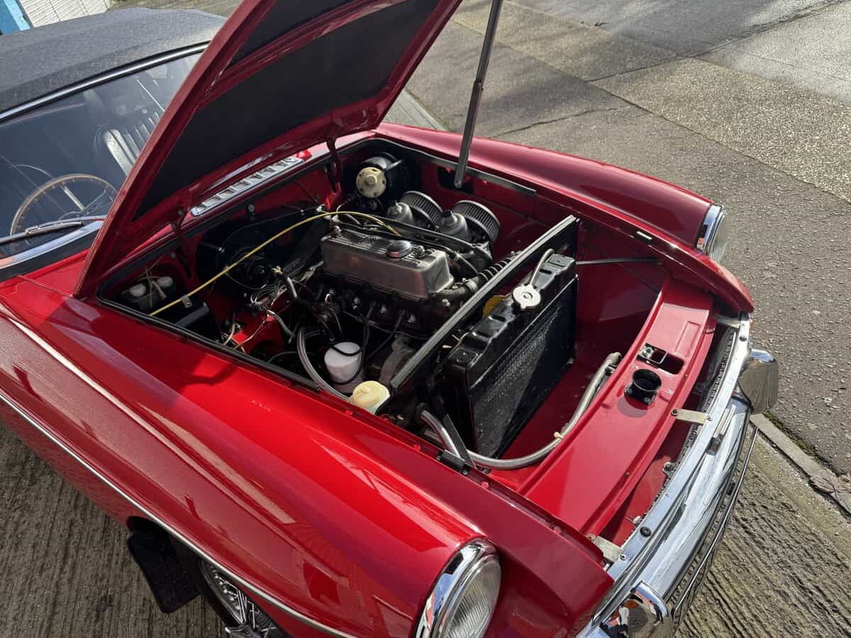 A key part of what makes this one so special is the replacement Heritage bodyshell. It was stripped back to bare metal and resprayed, then carefully rebuilt and finished with all the right touches — so it presents beautifully and drives with that “nothing to chase” feeling. Under the bonnet sits the refreshed 1.8-litre (1798cc) B-Series running twin SU carburettors, paired to a 4-speed manual gearbox with overdrive for relaxed cruising and effortless touring.