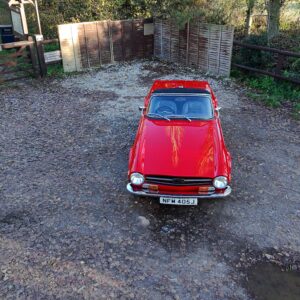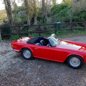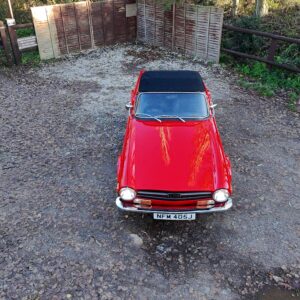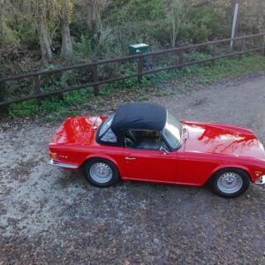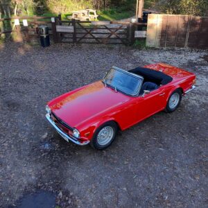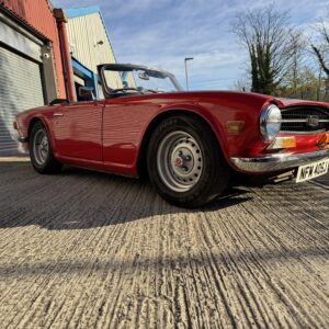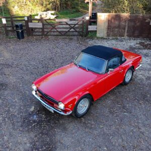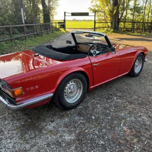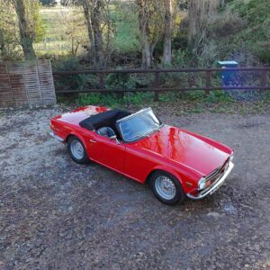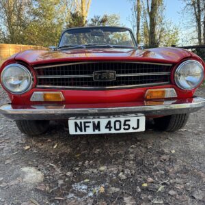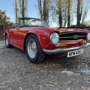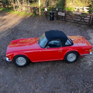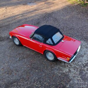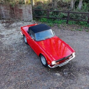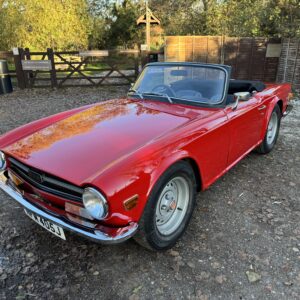 We’re excited to offer this beautiful 1971 Triumph TR6 — a UK right-hand-drive car in Red with black interior, presenting very nicely and set up exactly as enthusiasts like them. Restored in 2017 and meticulously kept since, it features a fully rebuilt 2.5-litre straight-six (photo-documented) now on triple Weber carburettors—fitted following minor, localised heat damage that affected the original fuel-injection hardware. The work was properly done with a full photographic record, and the car has been enjoyed since. Supported by a rich history file, it also benefits from a 4-speed manual with overdrive, a new mohair hood and retrimmed seats. It sounds glorious and pulls like a train.