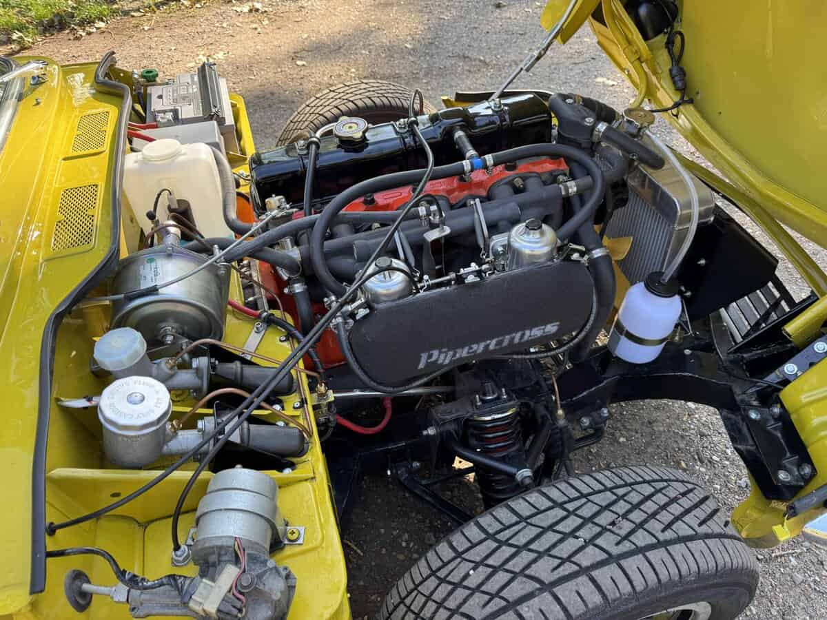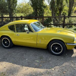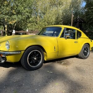 We’re thrilled to present this meticulously restored and tastefully upgraded 1973 Triumph GT6 Mk3 – finished in striking Mimosa Yellow with a black leather interior. With a fully rebuilt Triumph 2.5L straight-six engine, a Ford Type 9 five-speed gearbox, and uprated handling throughout, this GT6 combines the beauty of an iconic British sports coupé with the performance of a modern resto-mod.