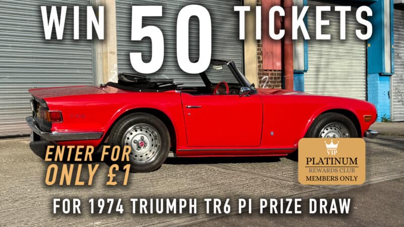 Win an extra 50 tickets for the 1974 Triumph TR6 Prize Draw. Exclusive to Platinum Rewards Club Members and for free postal entries. Automatic draw on the 9th April at 2 pm or as soon as the prize draw sells out.