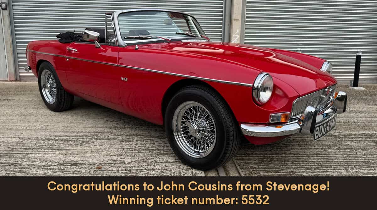 Congratulations to John Cousins, our 1972 MGB Roadster V8 competition winner!